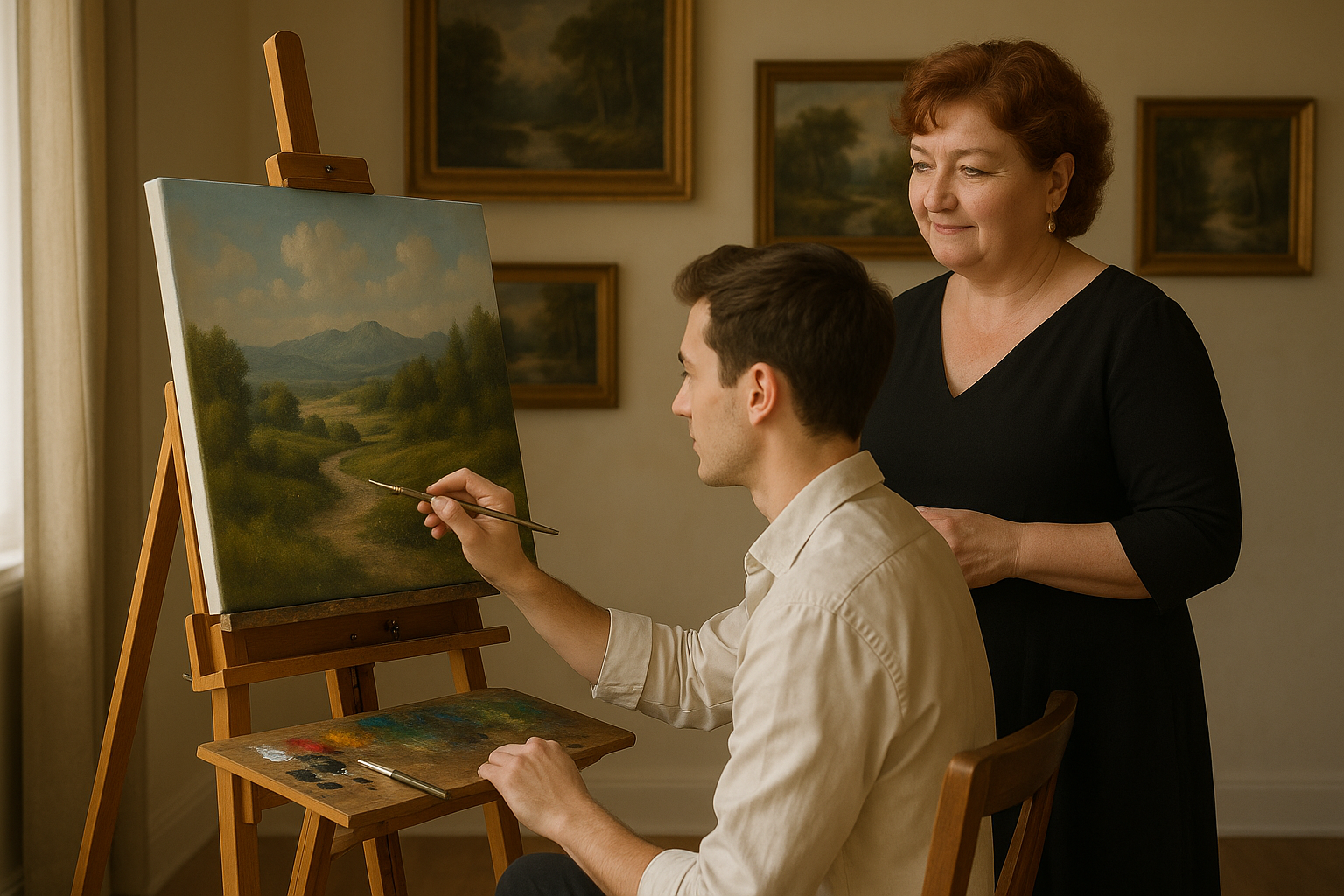 This is not a casual group paint class—it’s one-on-one fine art mentorship, customized to your goals and guided by a professional artist in a calm, creative studio setting.